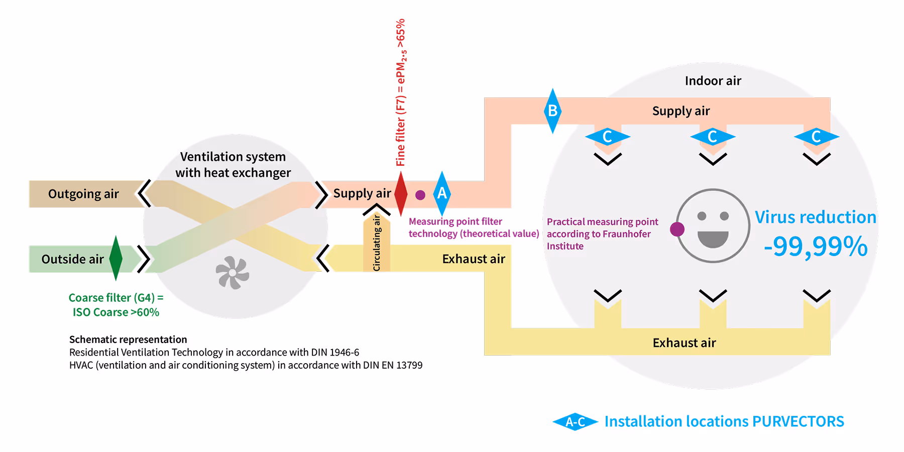 A PURVECTOR is installed right after the ventilation system, central for all ventilation lines