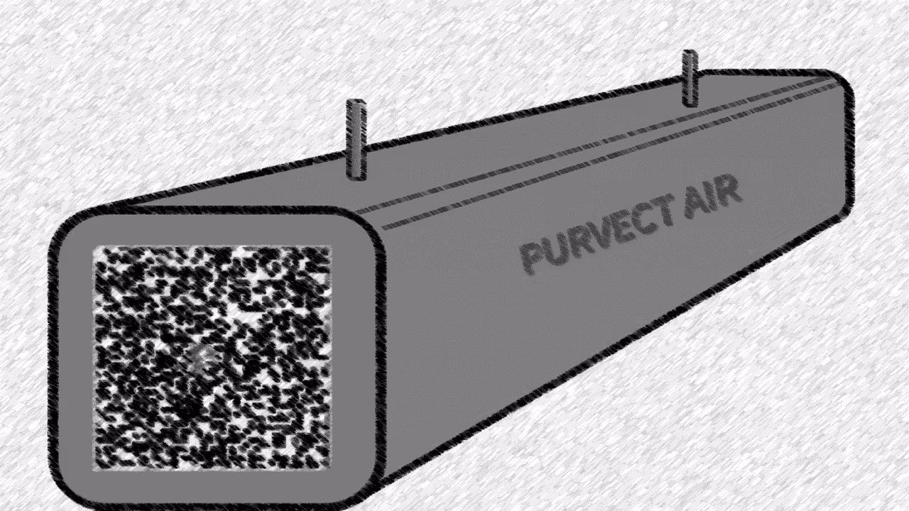 Ein PURVECTOR gleich nach der Lüftungsanlage montiert, zentral für alle Lüftungsstränge